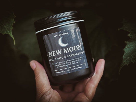 New Moon Candle | New Moon Ritual Manifestation | Palo Santo & Sandalwood 8oz